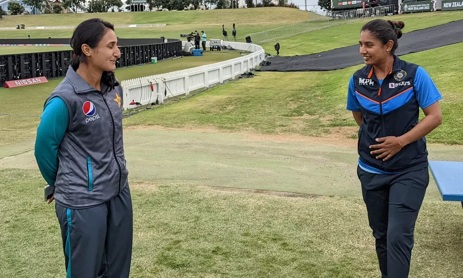 Pakistan captain Bismah Maroof and India captain Mithali Raj on the eve of their World Cup opening match (PCB)