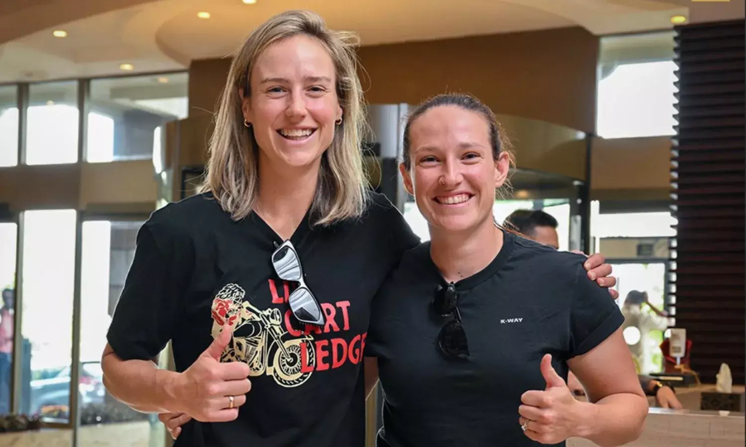 Ellyse Perry and Megan Schutt arrive at the RCB camp (RCB)