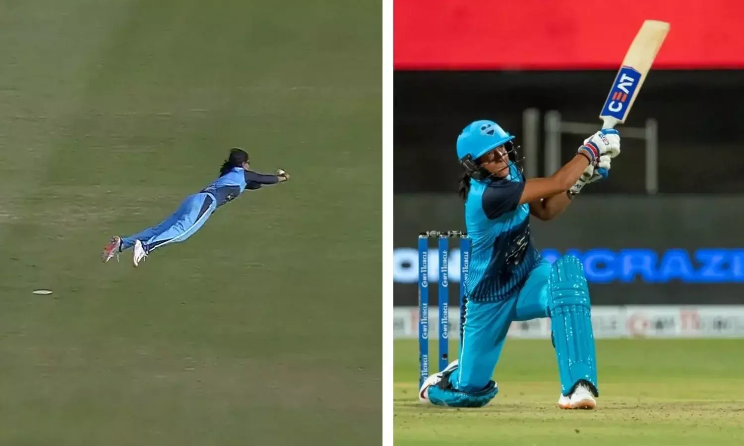 Supernovas' skipper Harmanpreet Kaur has unleashed a whole new magical self today as she flew to take Shafali Verma's catch at the Women's T20 Challenge. Watch here.