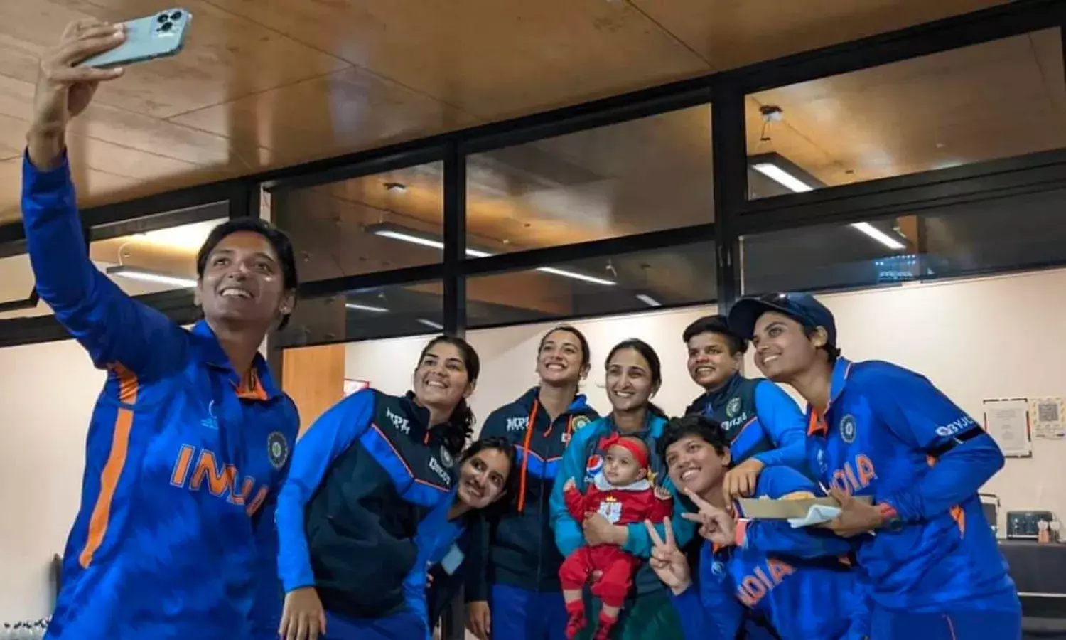Moments after India got a very convincing victory over Pakistan in their first match at the Women's World Cup 2022 on Sunday at Bay Oval, the Indian players could be seen fawning over the Pakistani captain, Bismah Maroof's seven-month daughter, Fatima.