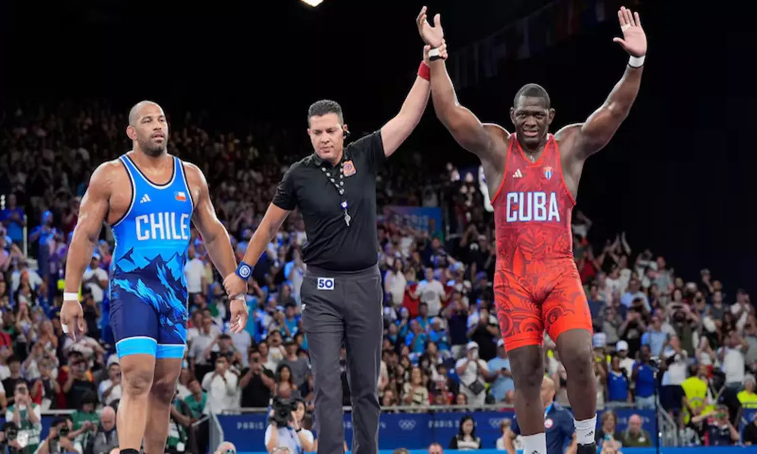 Mijain Lopez Nunez of Cuba defeated Chile's Yasmani Acosta Fernandez 6-0 to win his fifth consecutive gold medal at the Paris Olympics. (Photo Credit: Getty)