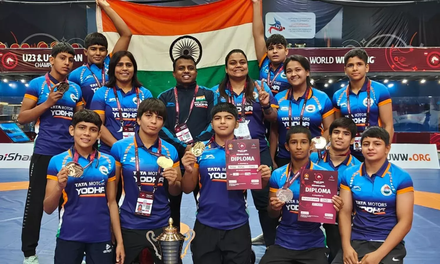 The female Indian wrestlers clinched the 'Team Title' at the U-17 and U-23 Asian Championships after collecting seven gold, one silver, and one bronze medals.