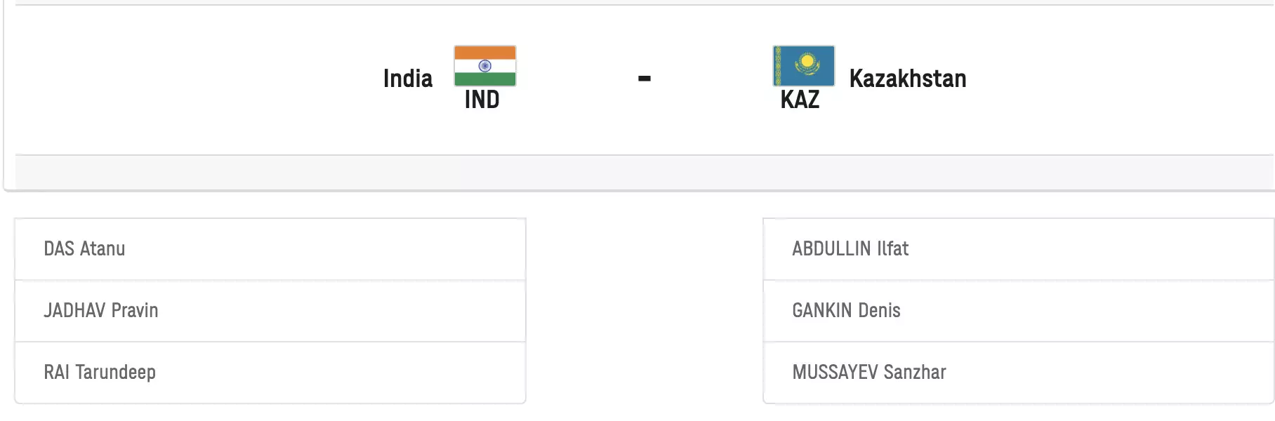 Earlier in the day, India beat Kazakhstan 6-2 to set up a quarterfinal clash. The Indians were strong, especially Atanu Das who drilled in five perfect 10s during team's easy win in the 1/8 Elimination round at the Yumenoshima Park. A win over Korea could yield India's greatest day in archery so far.