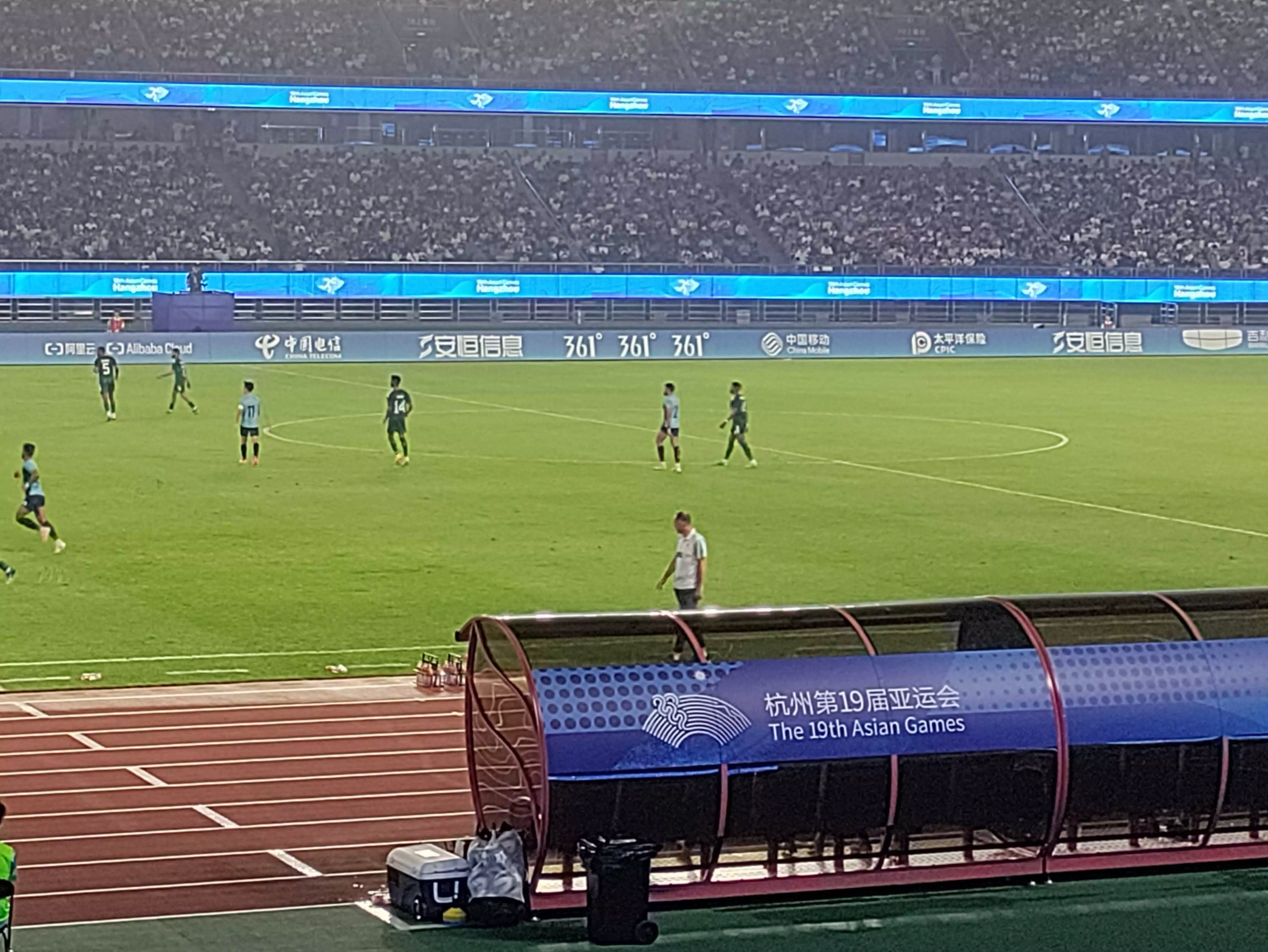 There is a coming together in the very first minute! Saudi's Alnashri takes a tumble and both the teams converge around him. The crowd, it has to be said, is absolutely electric!