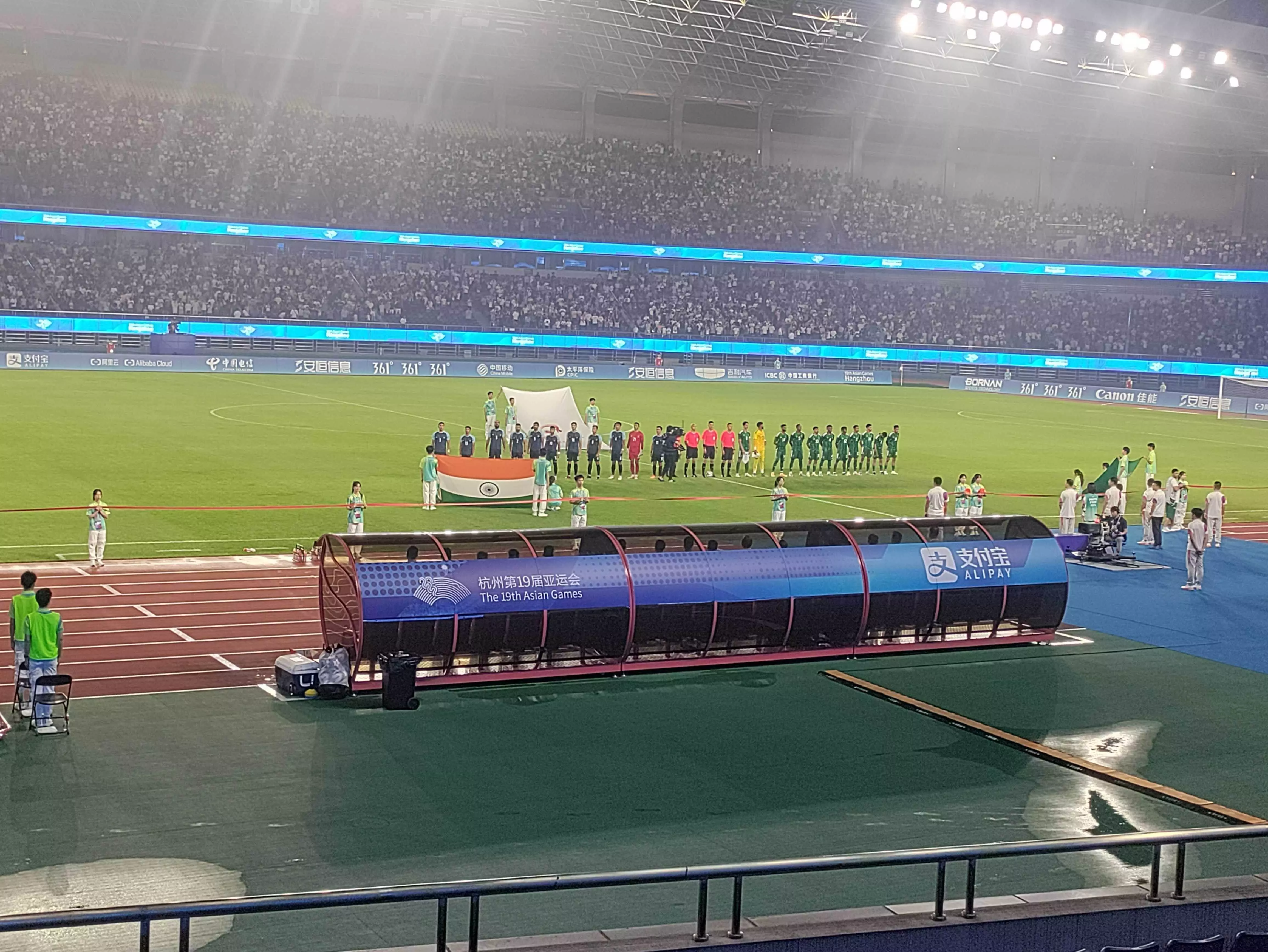 The Indian men's football team lost to Saudi Arabia 0-2 in the Round of 16 in the 2023 Asian Games. The first half ended 0-0 but then India conceded 2 goals within 6 minutes.