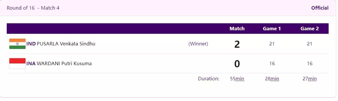 Final result: PV Sindhu beats Putri Kusuma Wardani 21-16, 21-16 in 55 minutes