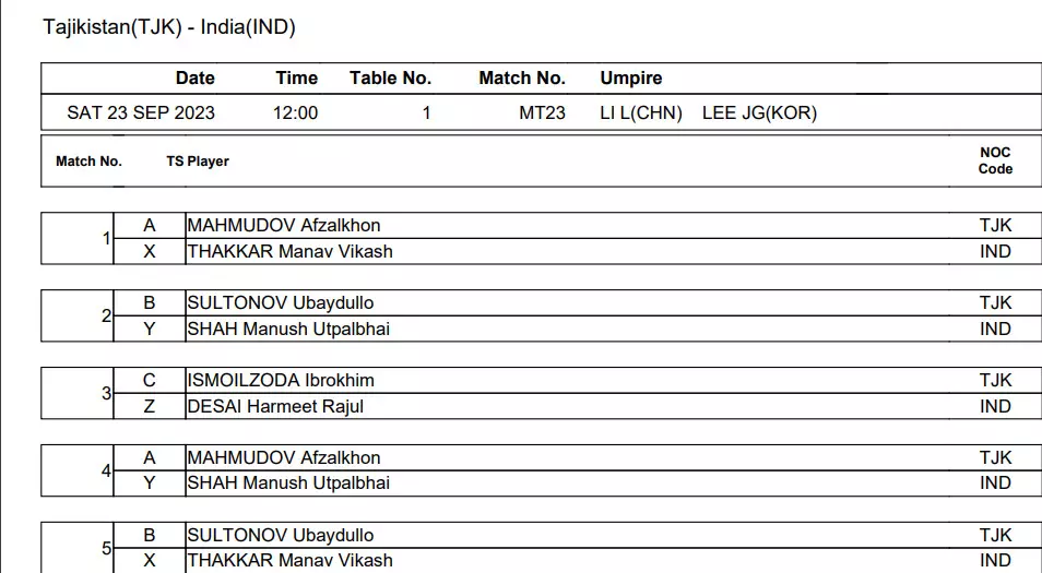 3. Harmeet Desai won 3-0 - 23 Sep 2023 4:53 AM GMT