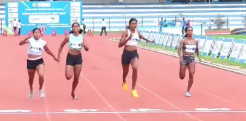 Abinaya clocked a great time of 11.55s to win the 100m title ahead of experienced runners Nithya Gandhe and Sneha SS.