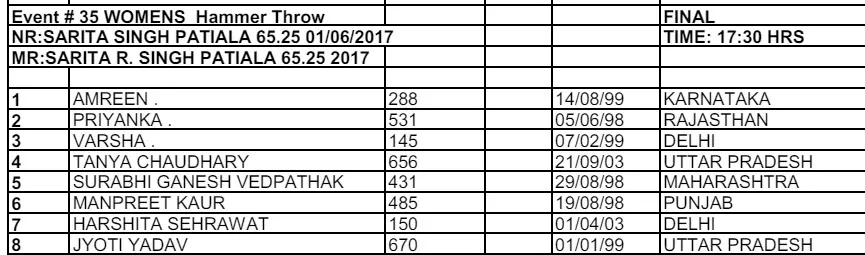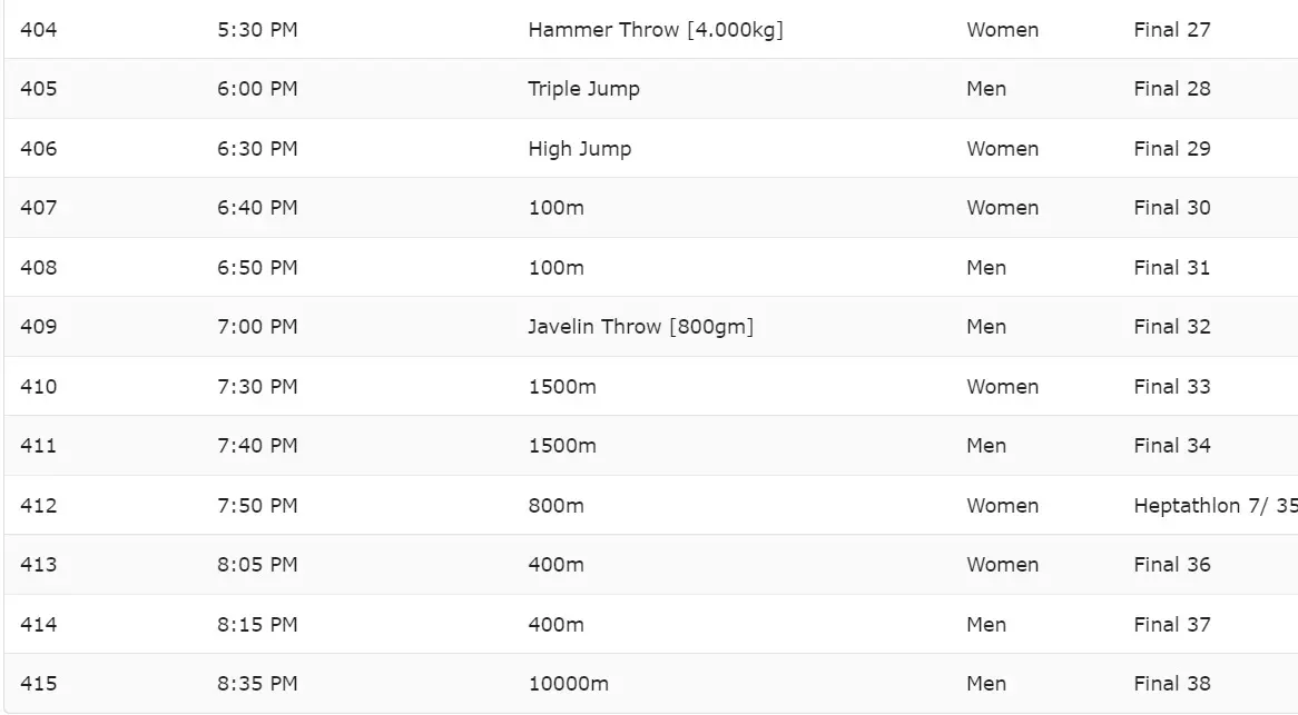 Here is the schedule for the final day of Federation Cup Athletics Event