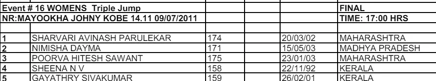 Here is the start list for the event, 5 female triple jumpers are taking part at the event