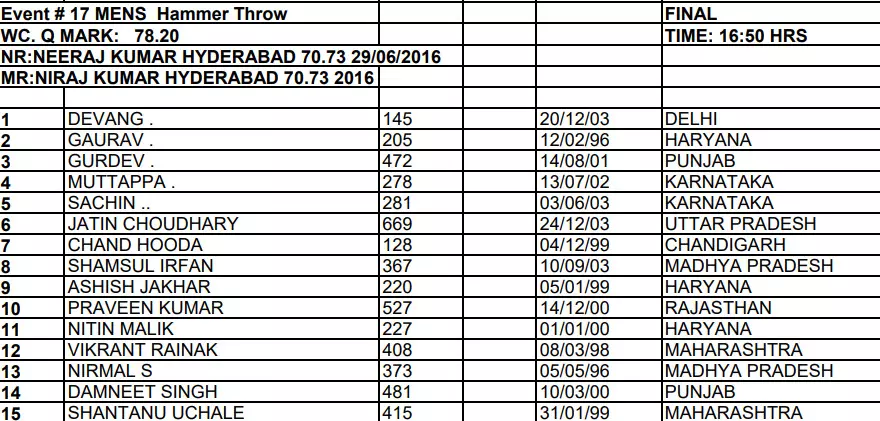 Praveen has a PB of 68m+ and will be hoping to defend his title here in Chennai.