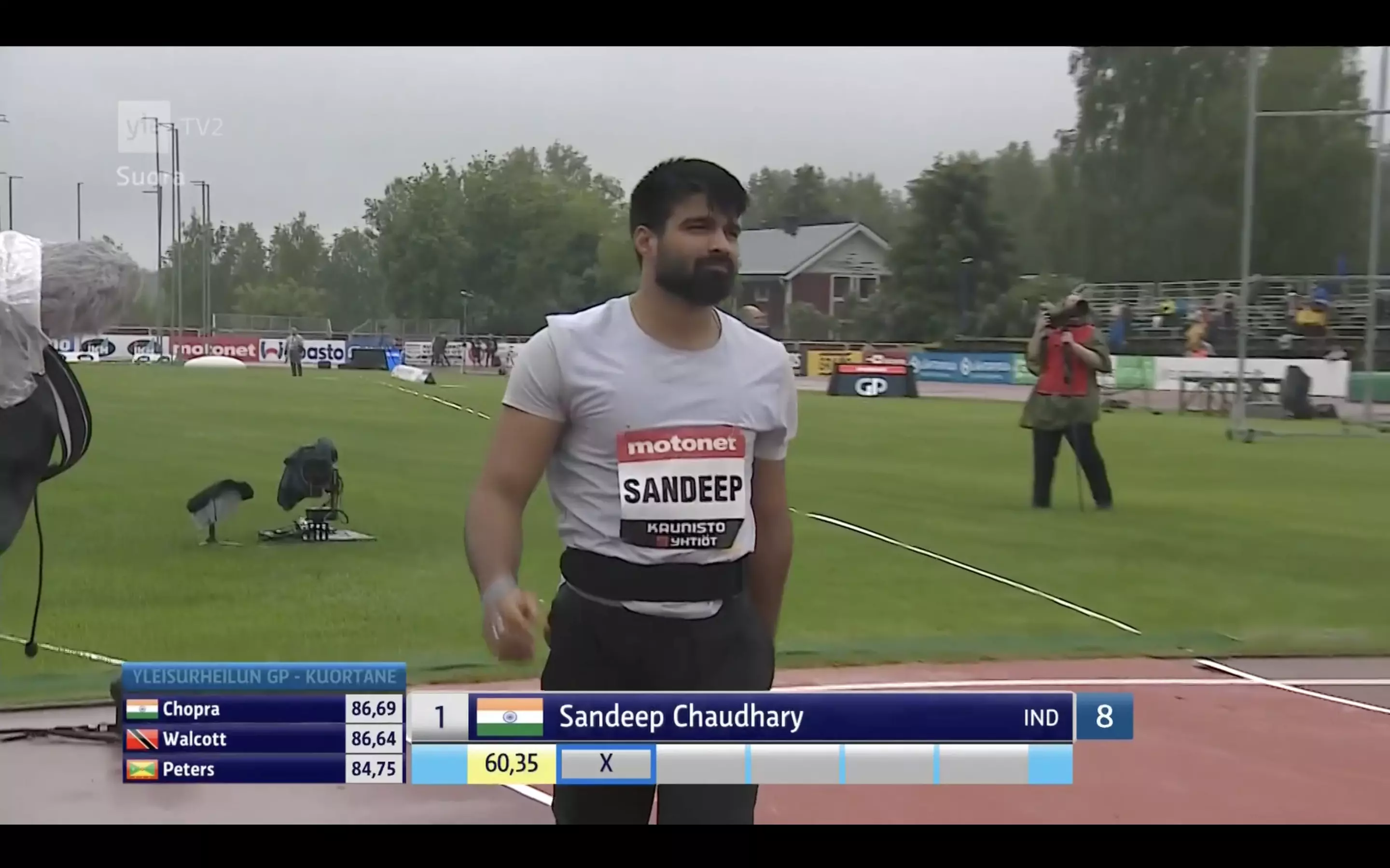 Sandeep Chaudhary is also competing in this event at Kuortane! He gets his throw just at 60.35 in the first attempt!