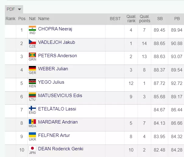 Here is the start list for the men's javelin event at this meet in Lausanne