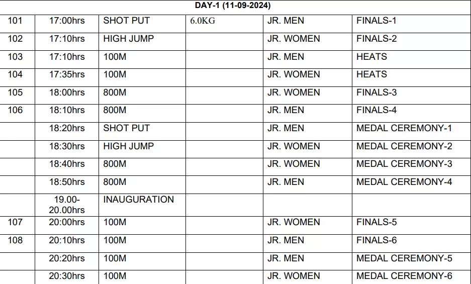 There are six finals on the first-day action of the South Asian Junior Championships, starting with the junior men's shot put final at 5:00 PM IST