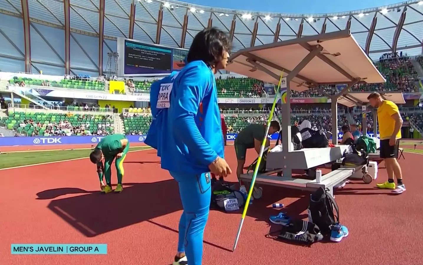Brace yourselves, Neeraj Chopra is out on the Hayward Field in Eugene!