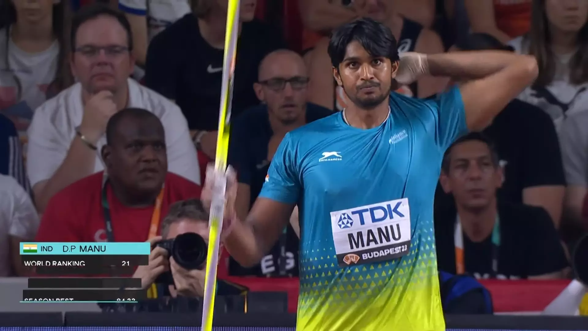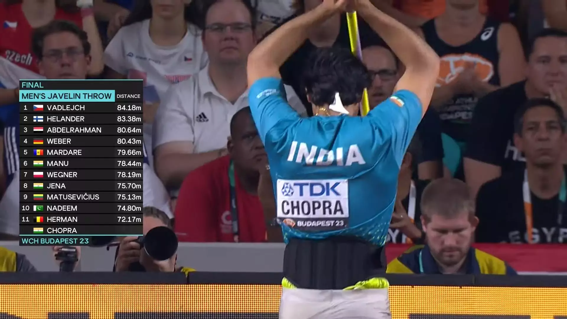 The Indian thrower moves to fifth as he also has a sub-par start with sub-80m throw.