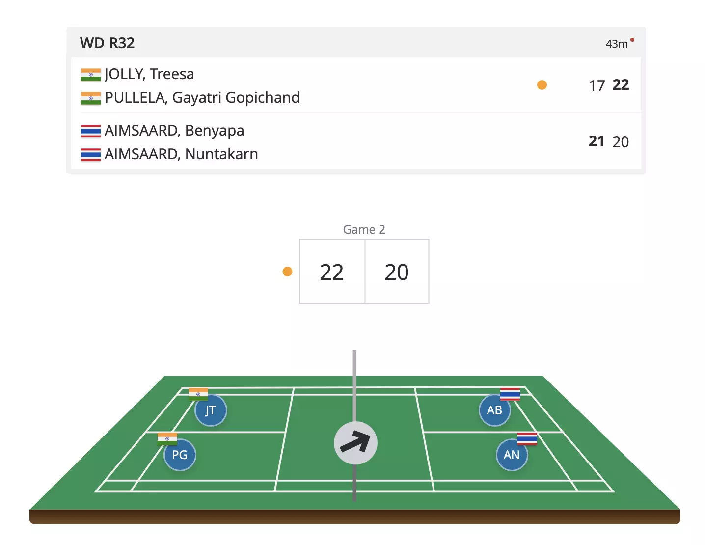Bit of happiness here too, Gayatri-Treesa have the lead in the decider!