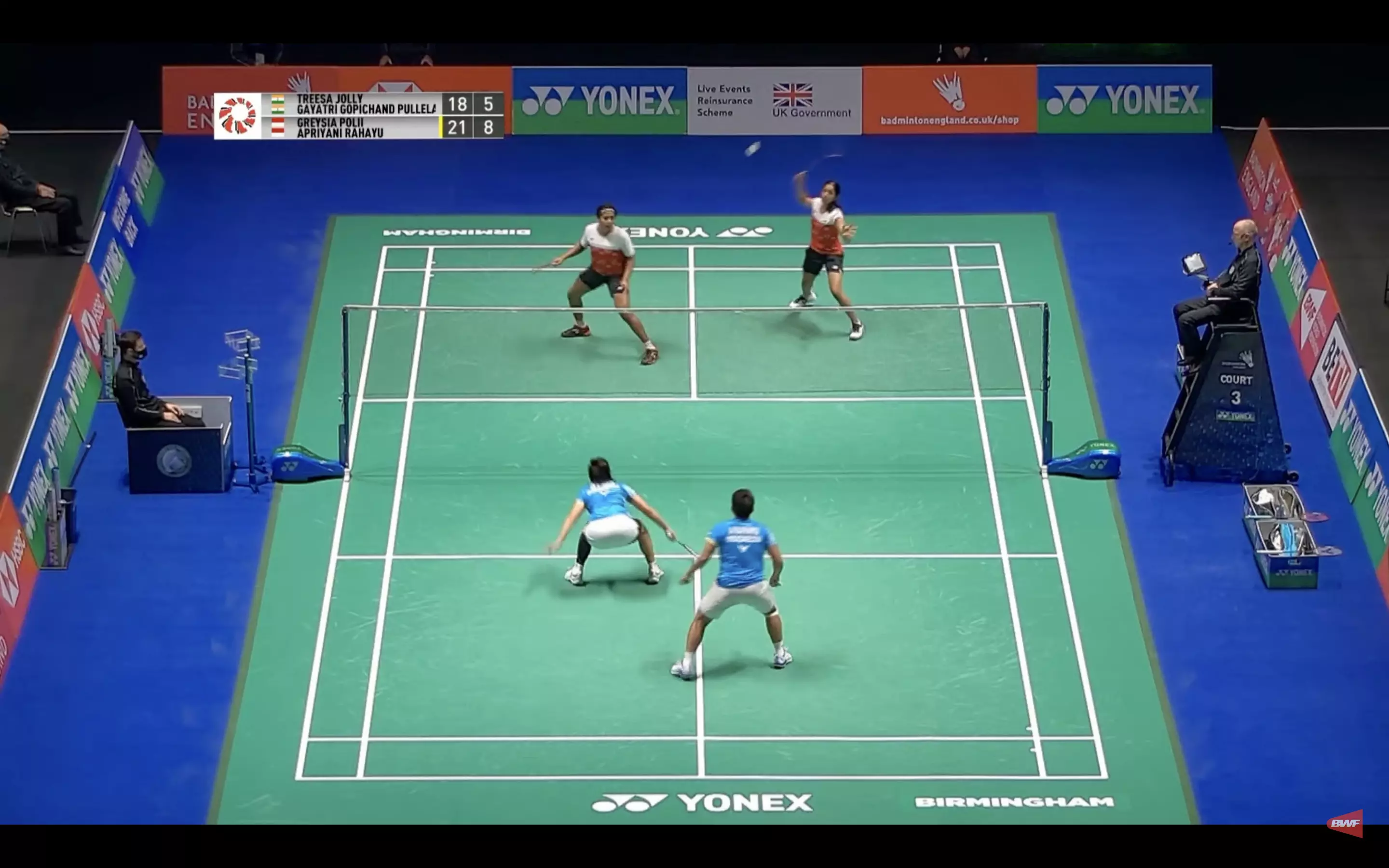 Gayatri/Treesa show spunk here as they clash against the Olympic champs and stay close on the board. Come on, girls!