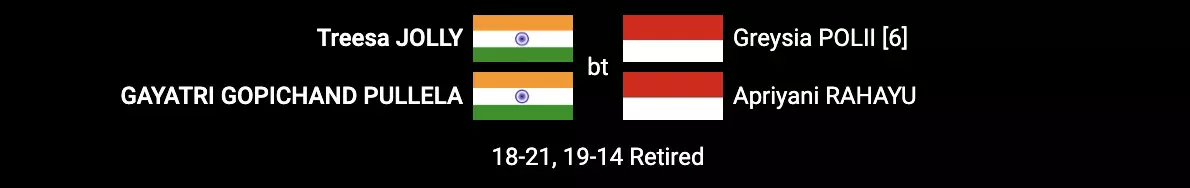 Wow, with that Gayatri/Treesa is through to quarters as Apriyani Rahayu retires hurt!