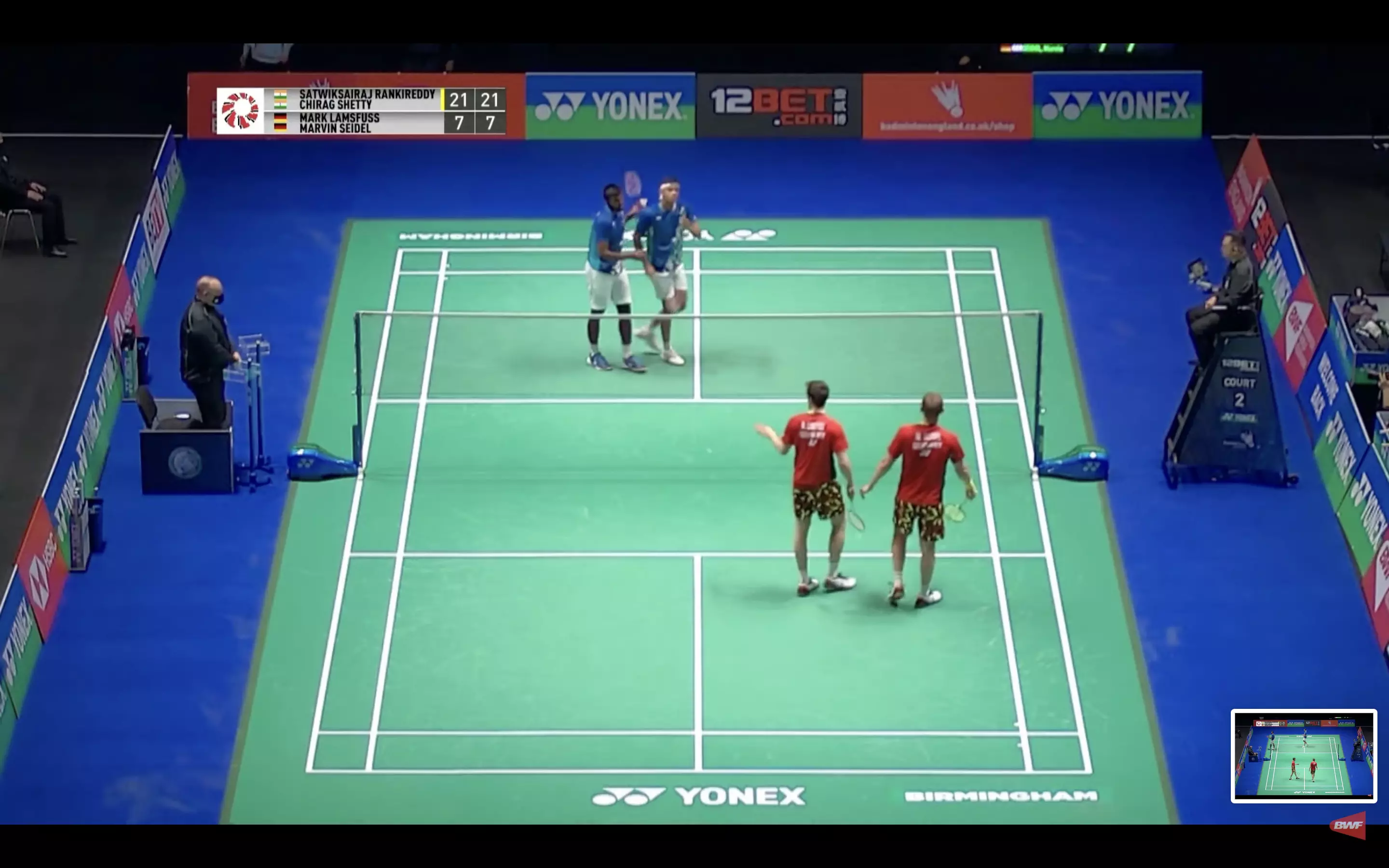 Brilliant performance from Satwik-Chirag today as they take only 27 minutes to wrap up business here, 21-7, 21-17 in a mirror score against the German duo of Mark Lamsfuss and Marvin Seidel!
