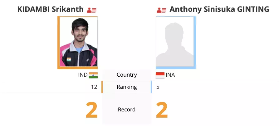 Former World No. 1 and World Championships silver medallist Kidambi Srikanth will take on World No. 5 Anthony Ginting now for a place in the quarters!