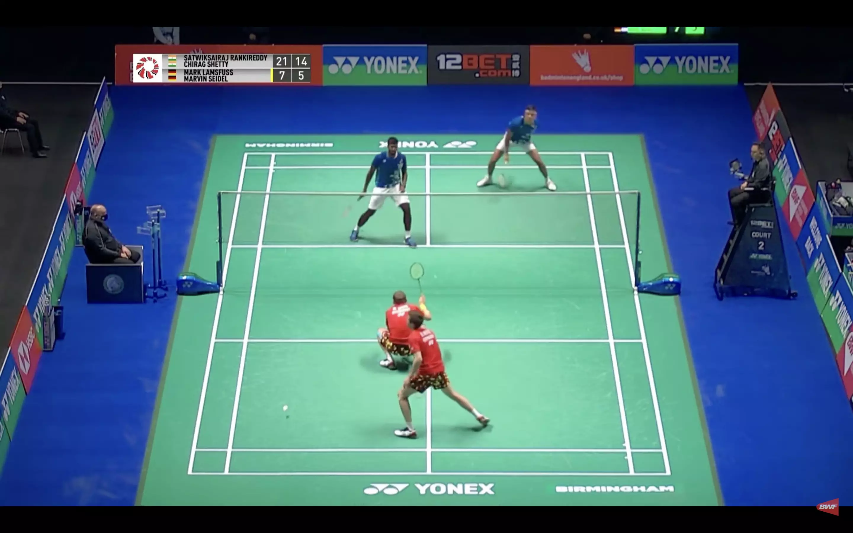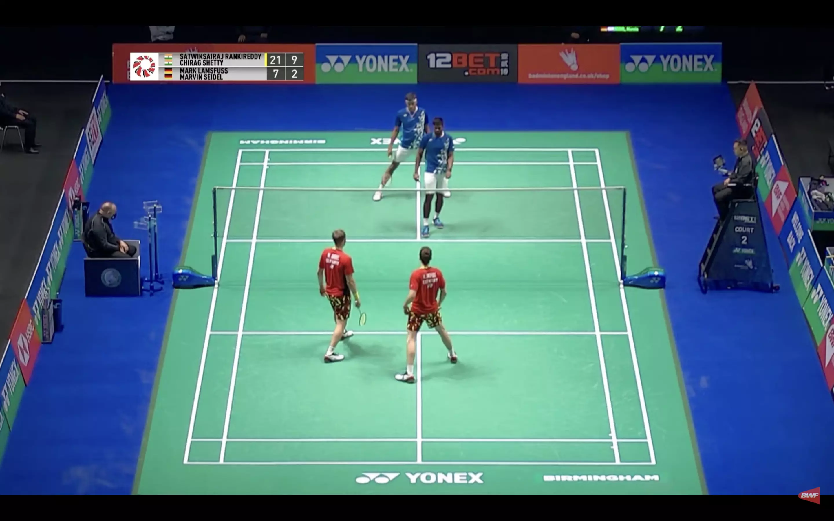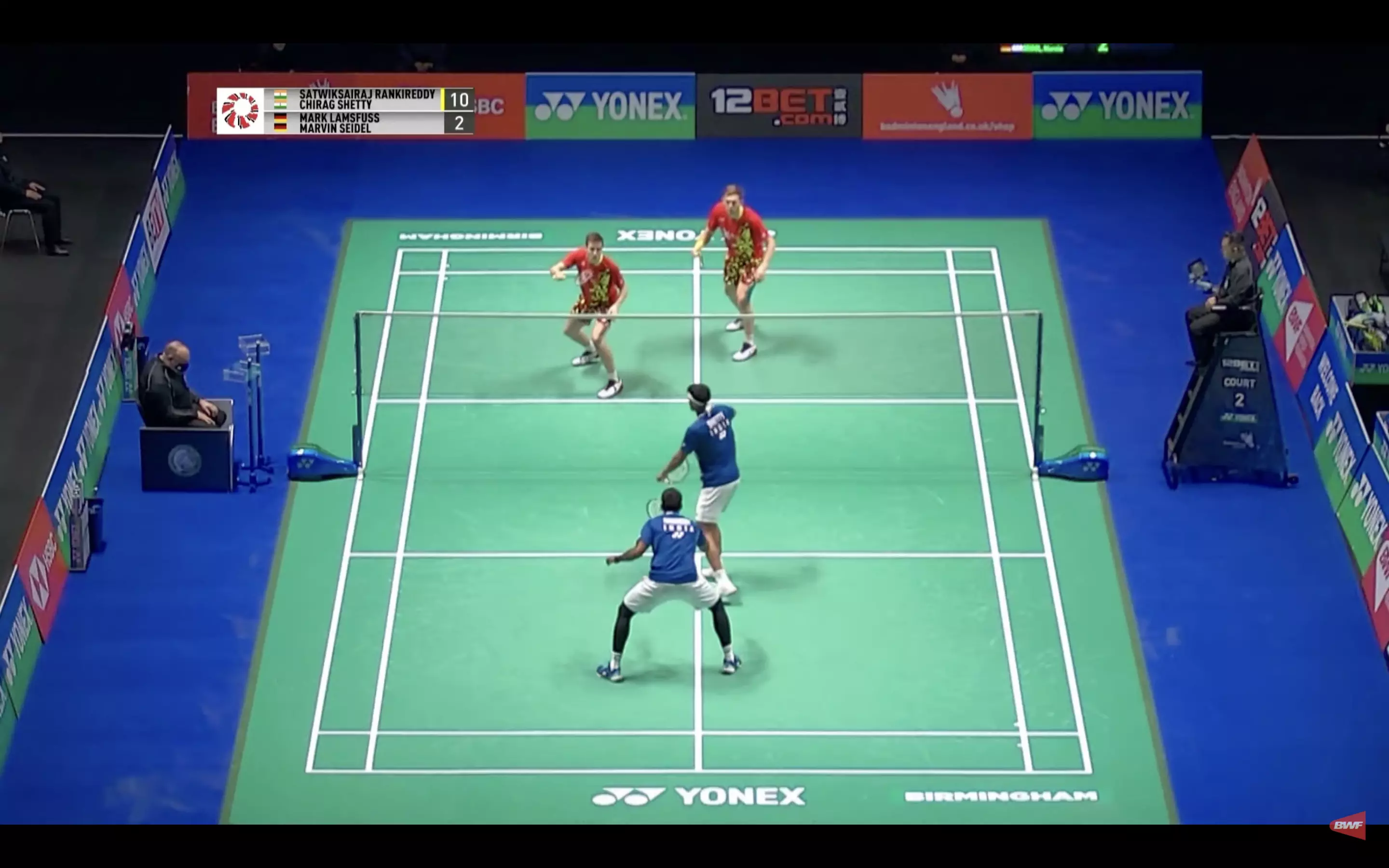 While Sindhu is fighting off Takahashi in the other clash, let's also get you some of the Men's Doubles action as India Open champs Satwiksairaj Rankireddy-Chirag Shetty get ready to face off against German pair of Mark Lamsfuss and Marvin Seidel for a place in the quarters!