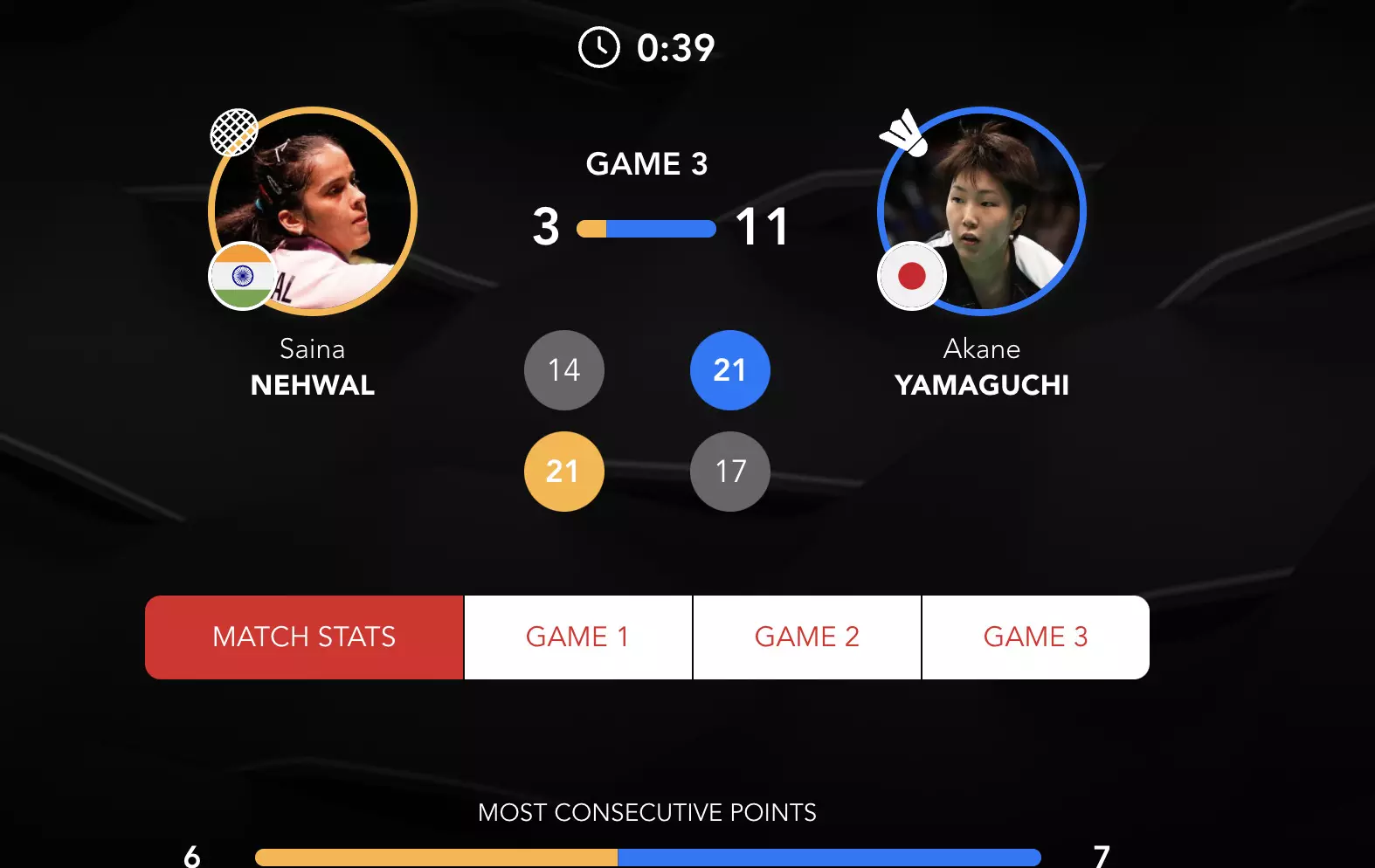 It was so close yet so far for her as she could not sustain her fightback against her Japanese opponent. Despite claiming the lead for the first time at 17-16, Akane sealed the match with 5 consecutive points at the end.