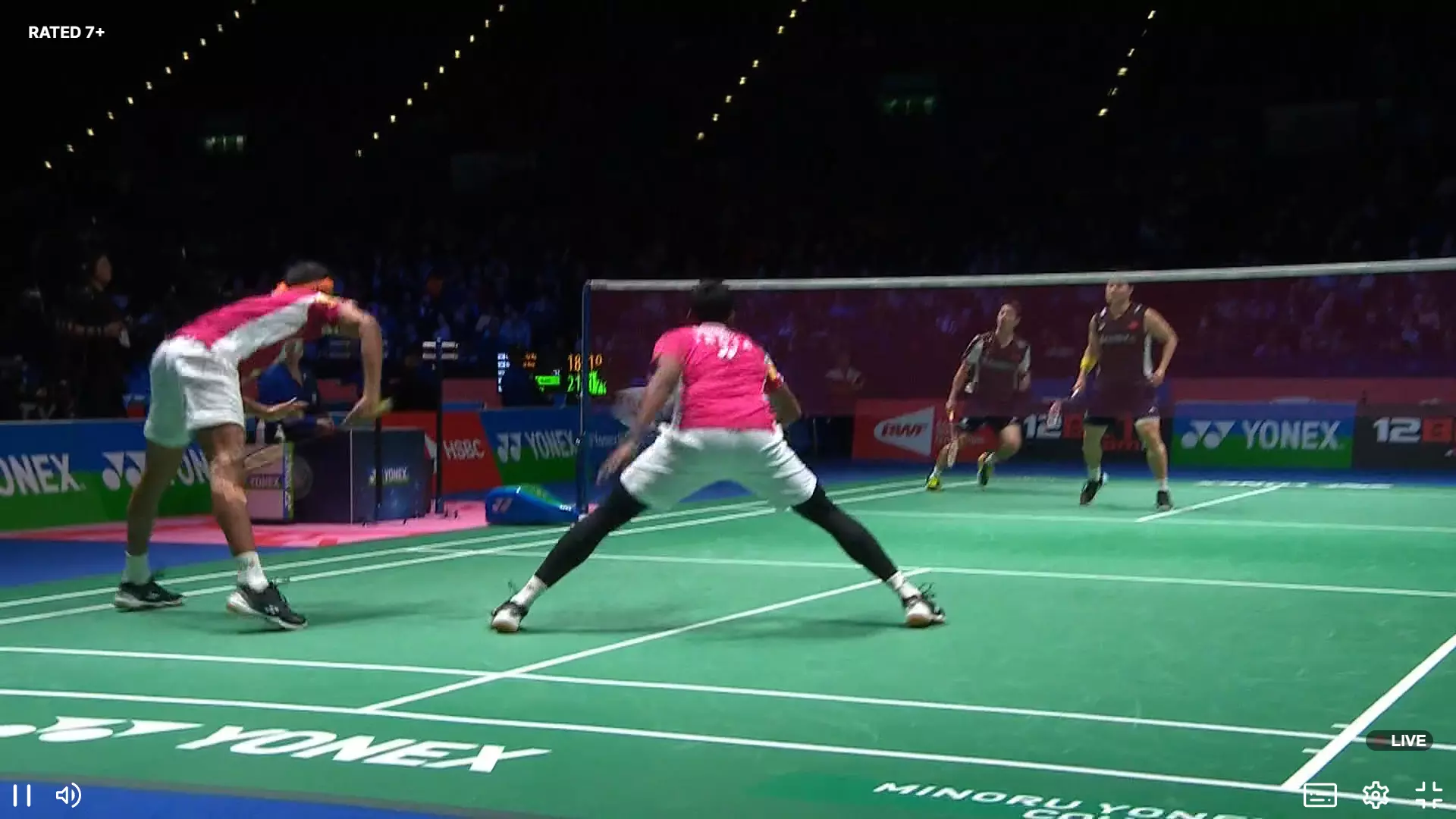 Satwik/Chirag are trailing 12-14 as the Chinese pair are getting points on the net.