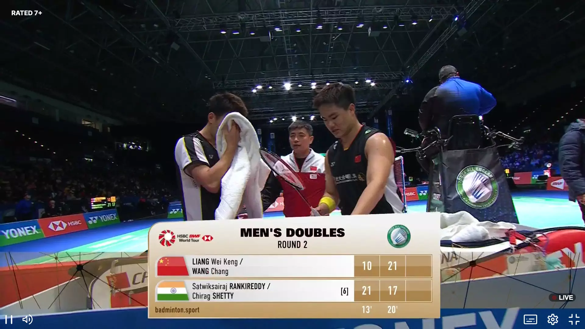 - Satwik Rankireddy/Chirag Shetty v Wang Chang/Liang Wei Keng