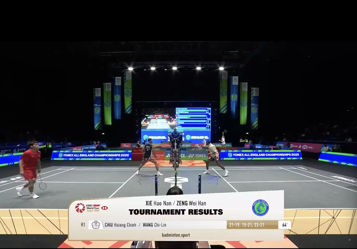 Xie,Zenga gets the first two points but Satwik/Chirag chases and now leads 3-2.