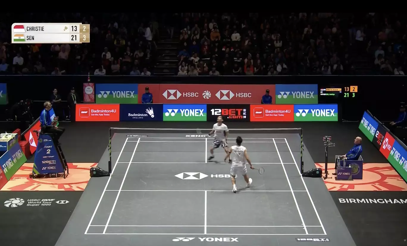 Lakshya Sen is leading against Jonathan Chritsie 14-10 in the first game.