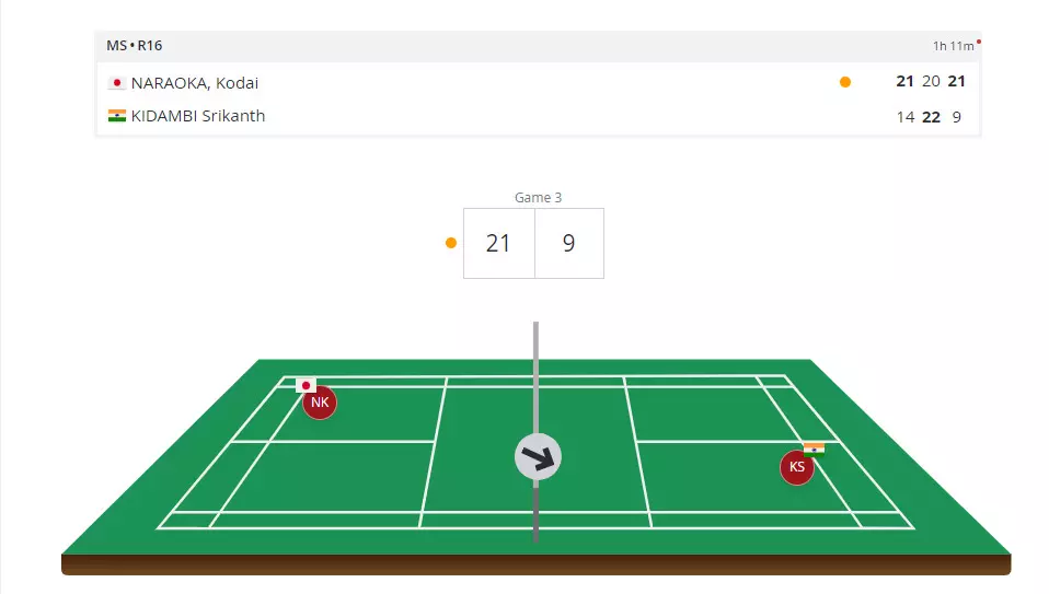 Kidambi Srikanth goes down 14-21, 22-20, 9-21 in 71 minutes against Japan's Kodai Naraoka.