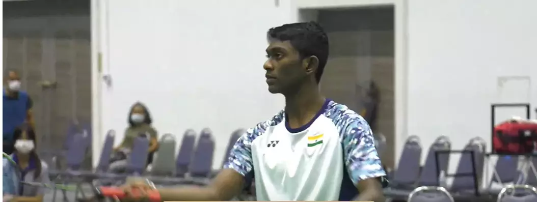 The Chinese Taipei shuttler shows some aggression and Anish Thoppani is struggling to keep up. The Indian trails 2-7.