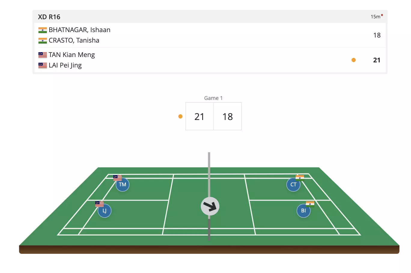 Quite the close fight here in Game 1 but Ishaan-Tanisha fail to capitalise. Into Game 2 we go!