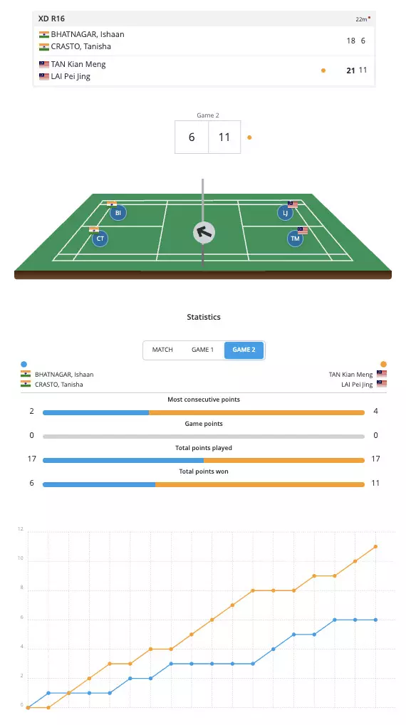 Let's get you some updates from the Mixed Doubles as the young pair of Ishaan Bhatnagar and Tanisha Crasto are up against Tan Kiang Meng and Lai Pei Jing!