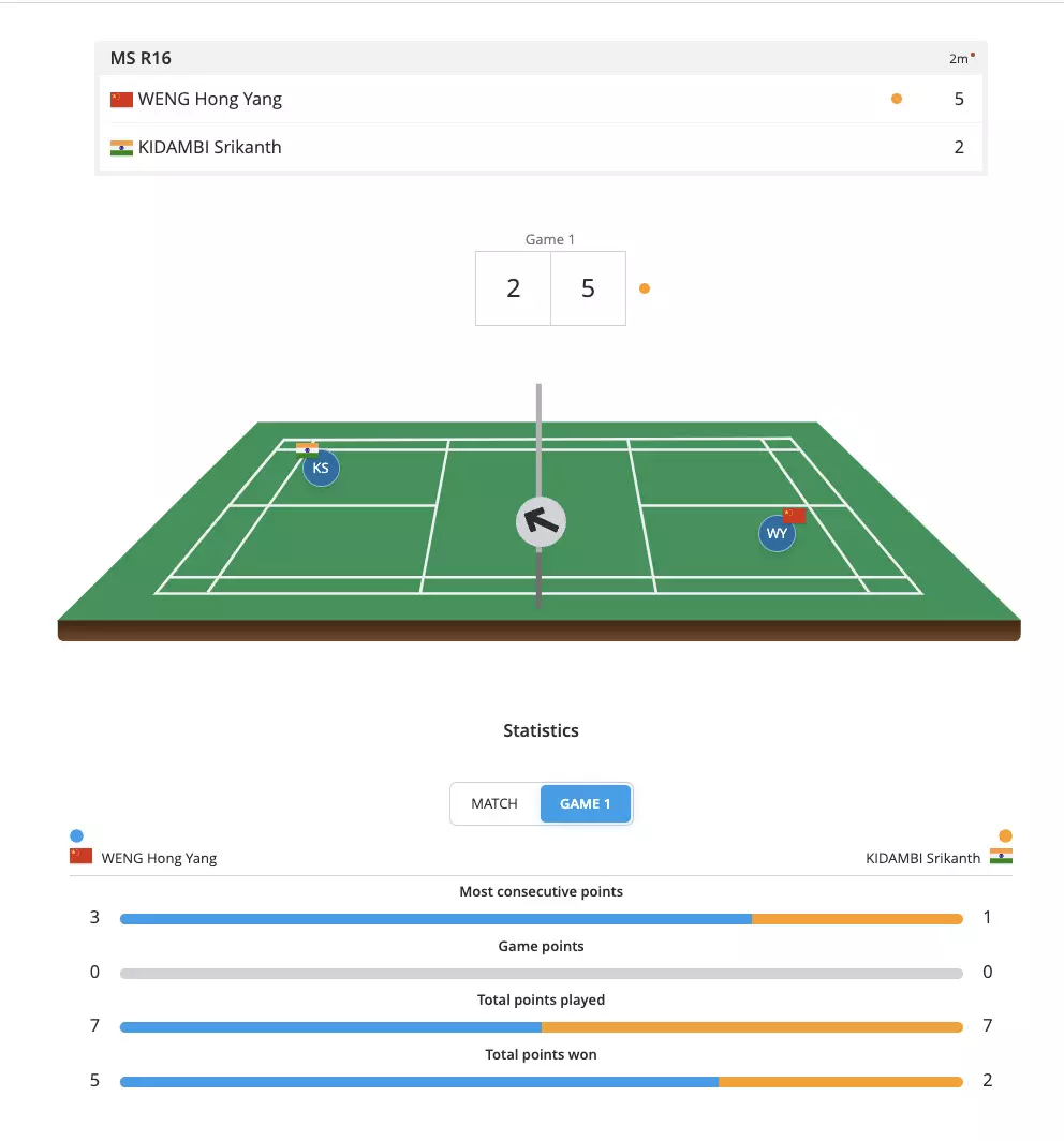 Kidambi Srikanth switches gears and gets more active and is hitting a lot of smashes to take the lead at 9-6! Let's gooo!