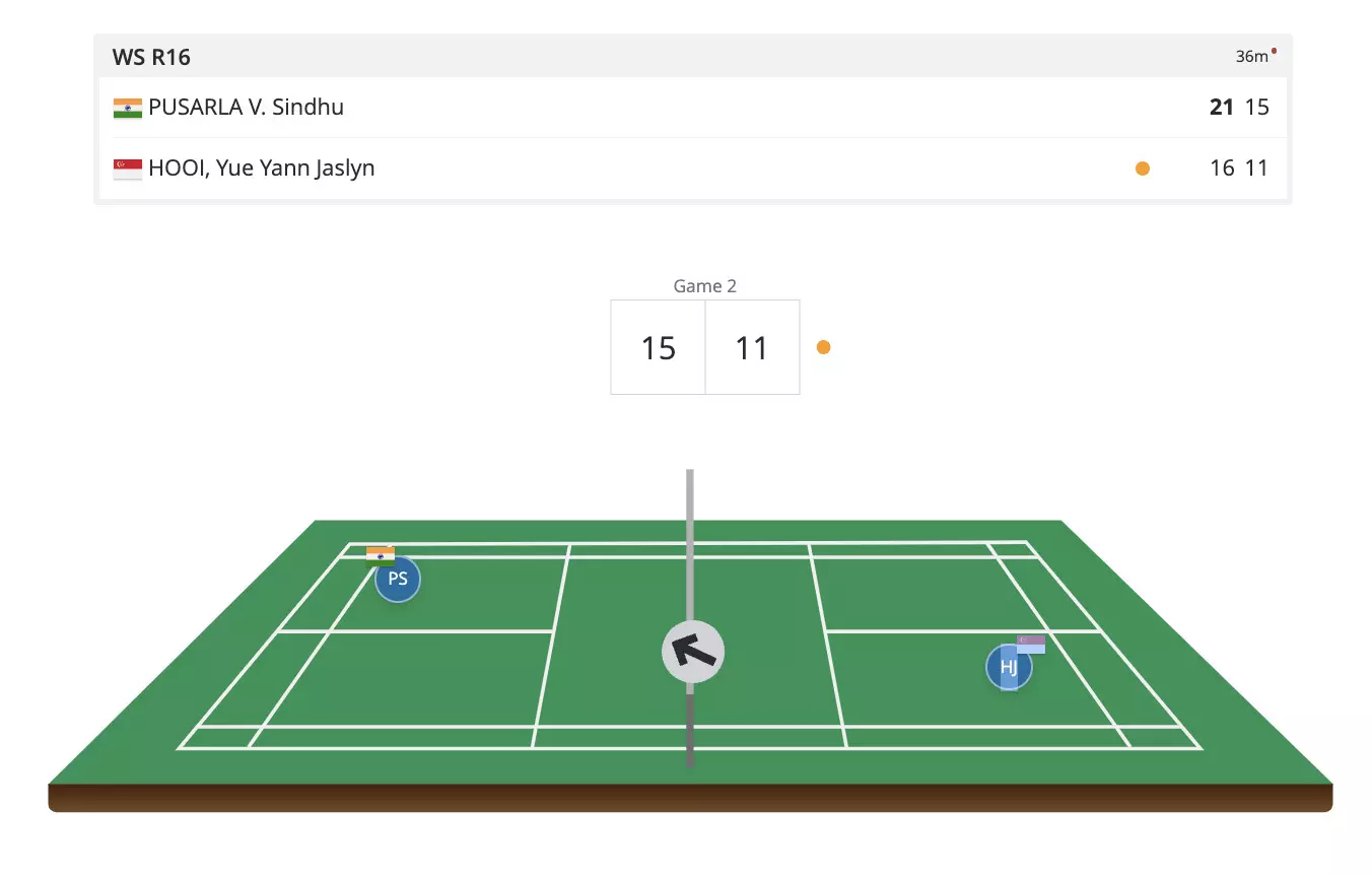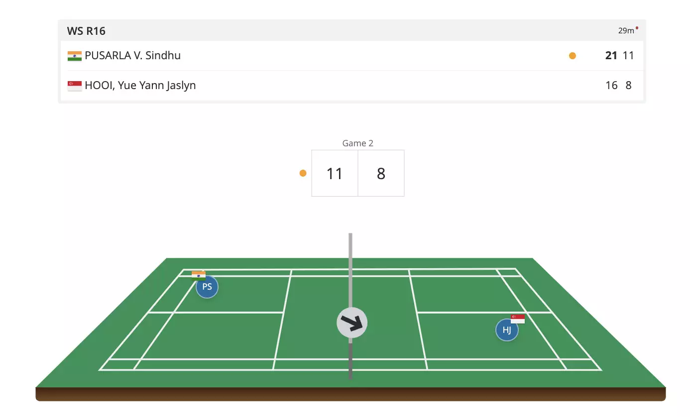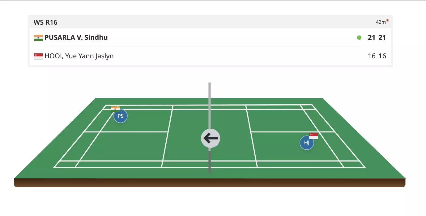 Good show from the star shuttlers as she wraps up business in straight games, 21-16, 21-16!