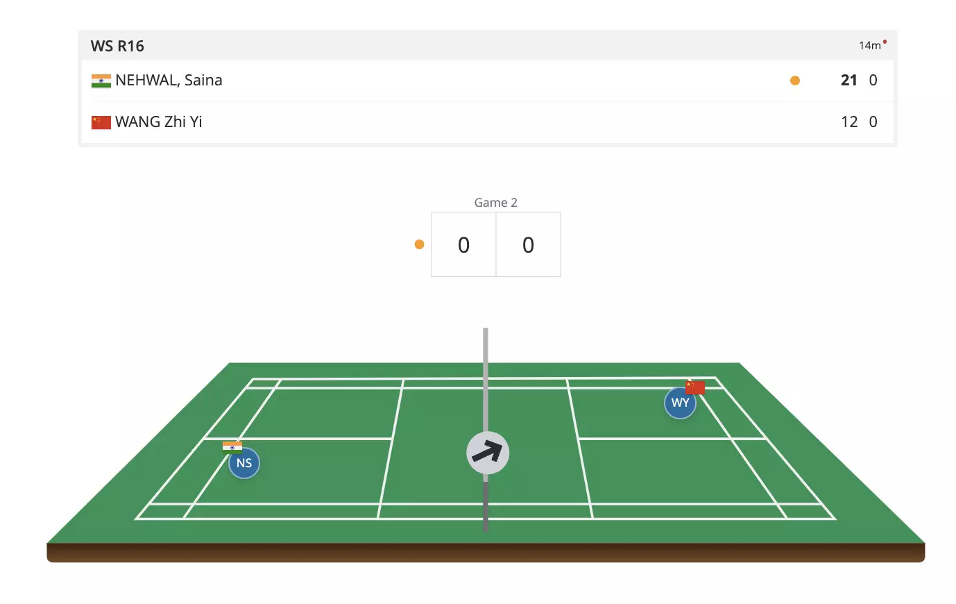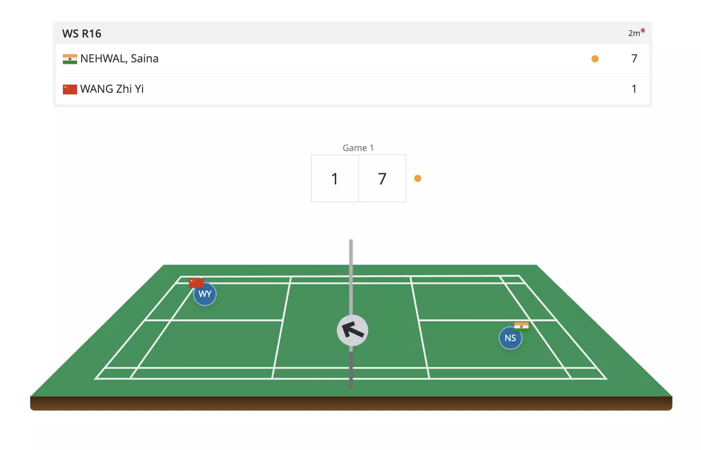 Saina Nehwal gets off to a rock-solid start here against Wang Zhi Yi and leads at 7-1! Let's gooo!