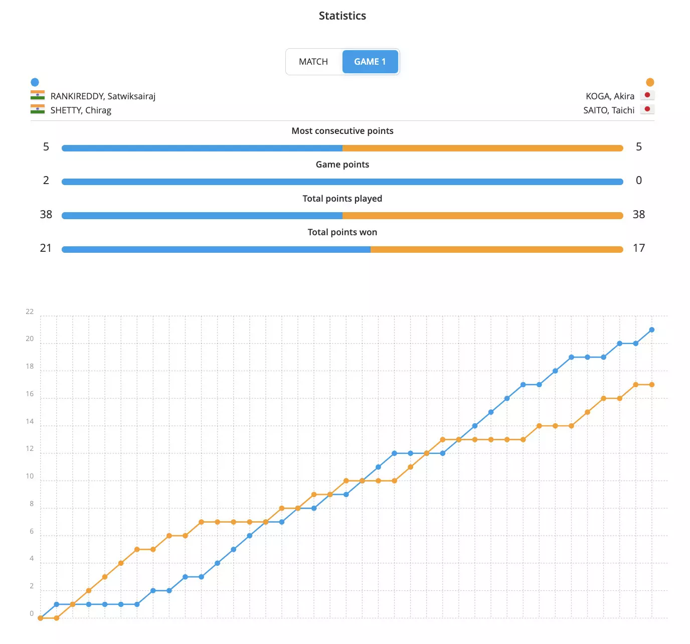 However, Satwik-Chirag keep the momentum on their side and win the first game, 21-17 in 20 minutes!