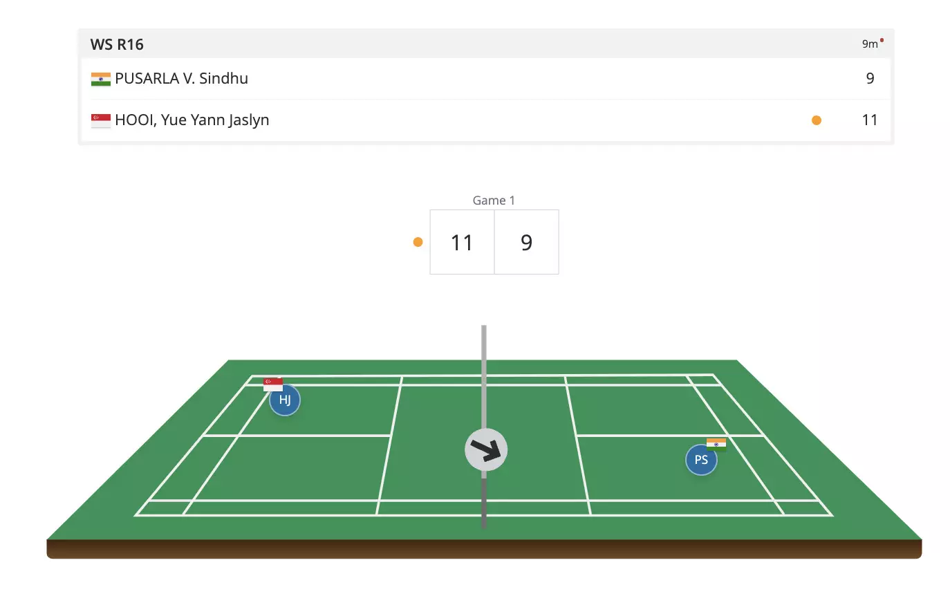 Sindhu loses the lead and Hooi builds pressure to head into the mid-game interval at 11-9