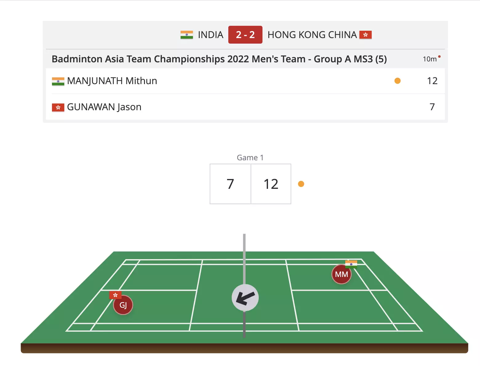Onwards and upwards now! Mithun Manjunath takes India a step closer to sealing this tie with a win as he bags the opening game against Hong Kong China at the BATC 2022!