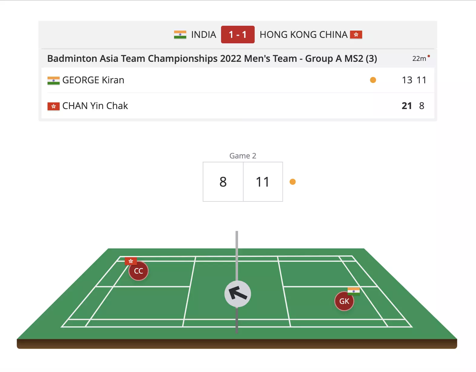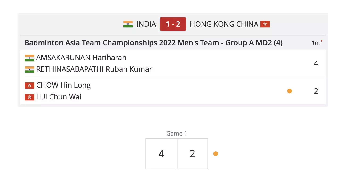Putting in solid performances, the young Indian men's team get their first group stage victory at the BATC 2022, winning 3-2 against Hong Kong.