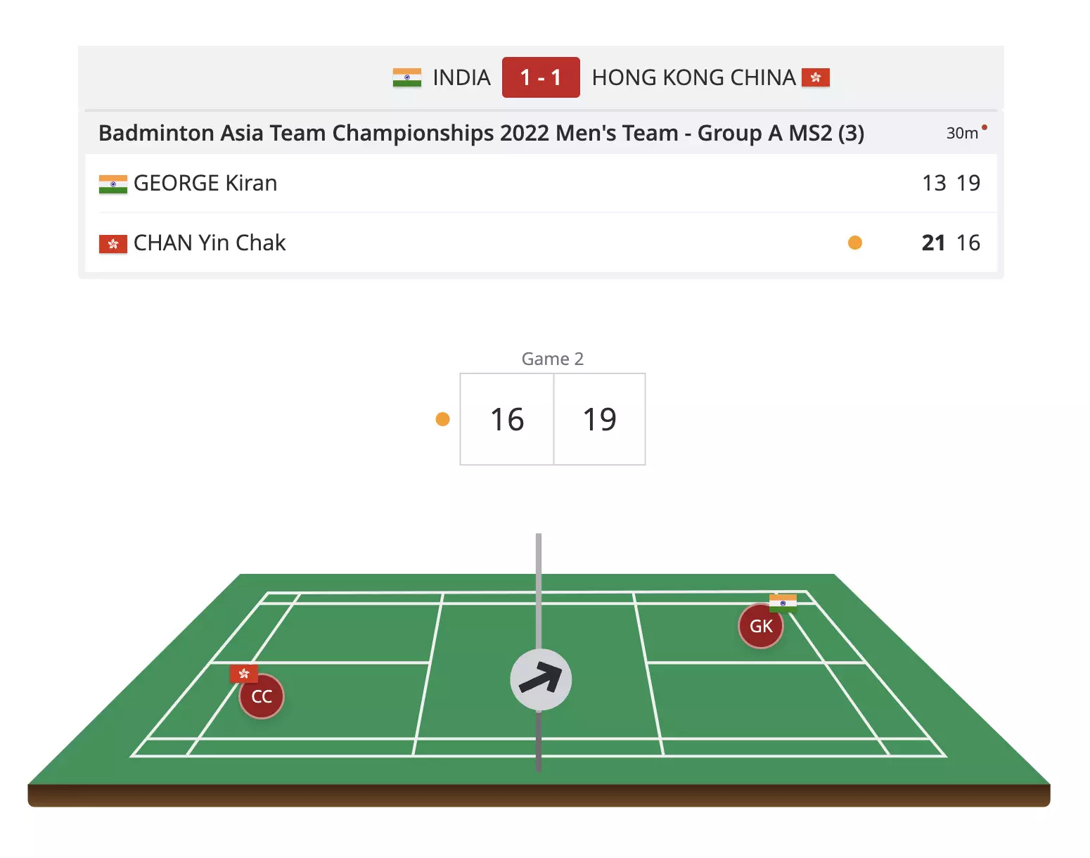 Hong Kong leads the tie with 2-1 on the board.