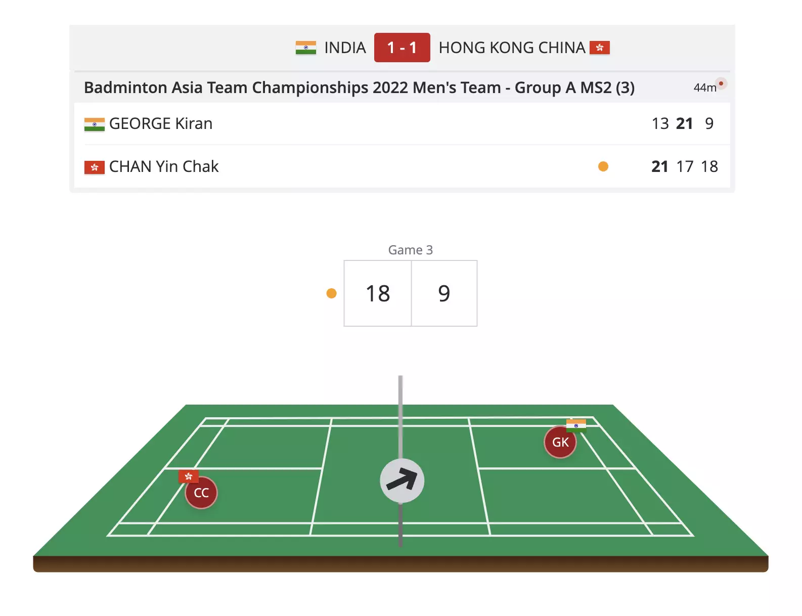 Kiran George is on the back foot as Chan Yik Chak leads with 9 points!