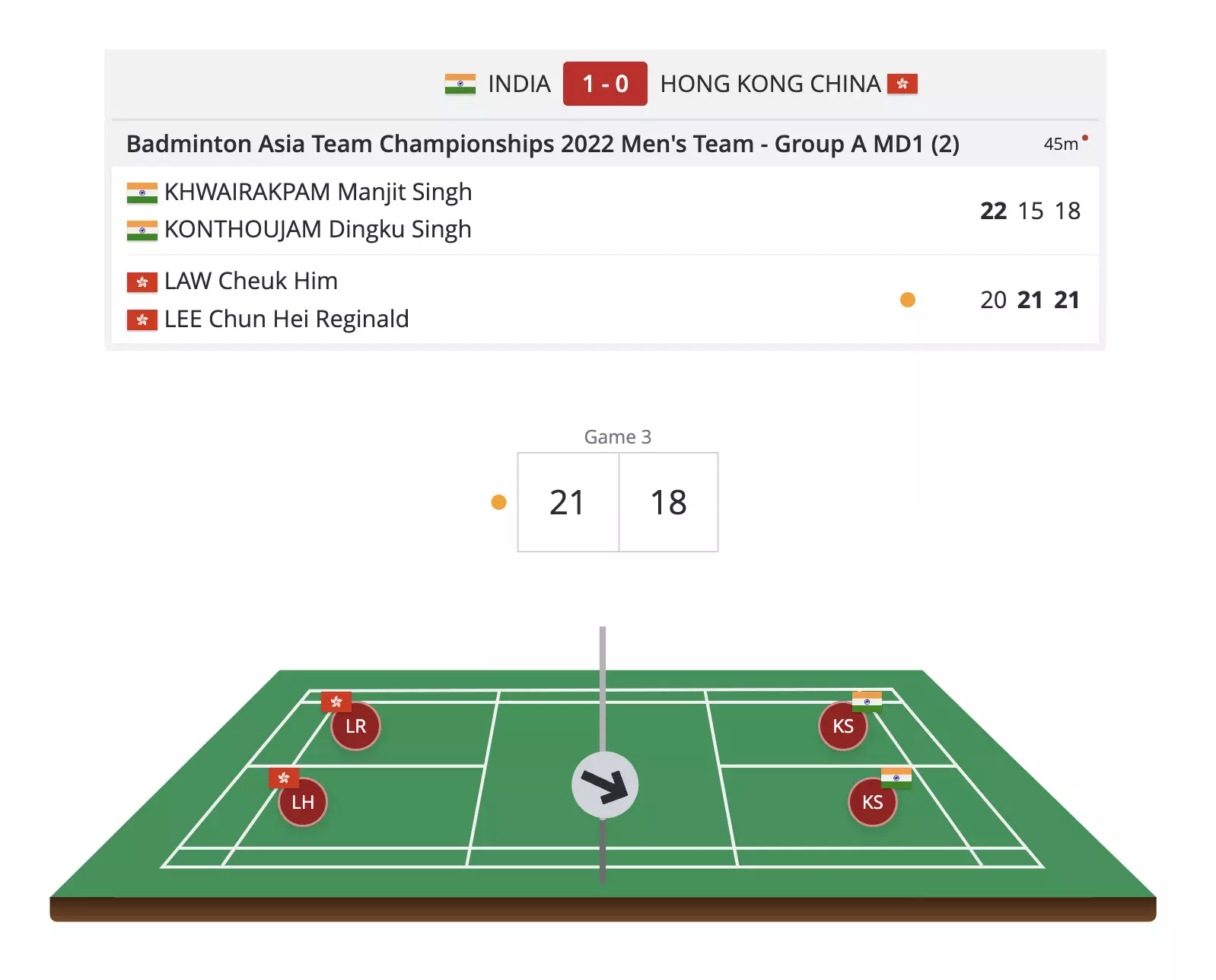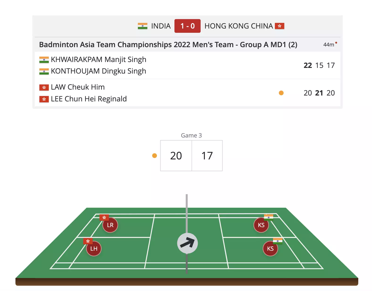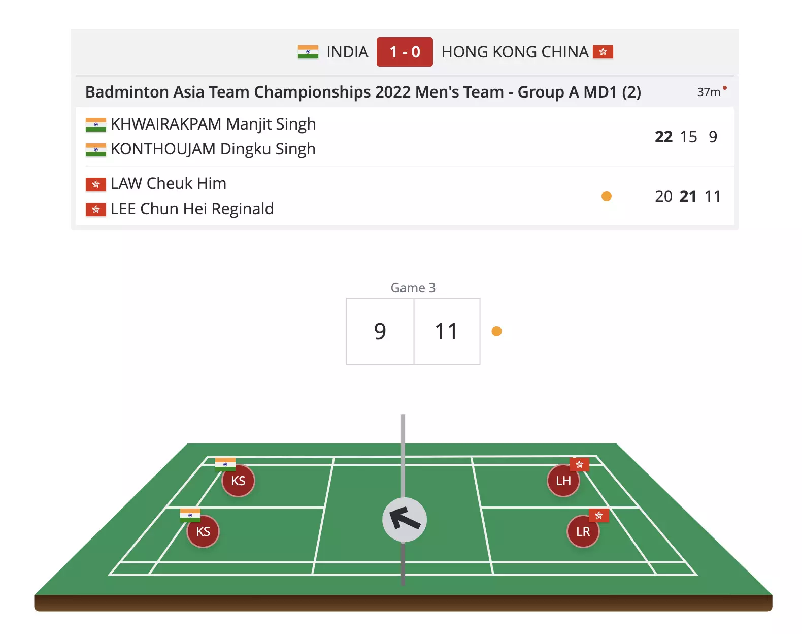 Manjit and Dingku have a 2-point lag as the Hong Kong pair head into the mid-game break with the lead!