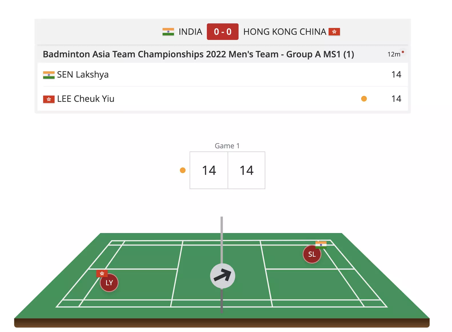 Lakshya Sen and Lee Cheuk Yiu are tied at 14 ALL in the opening game!