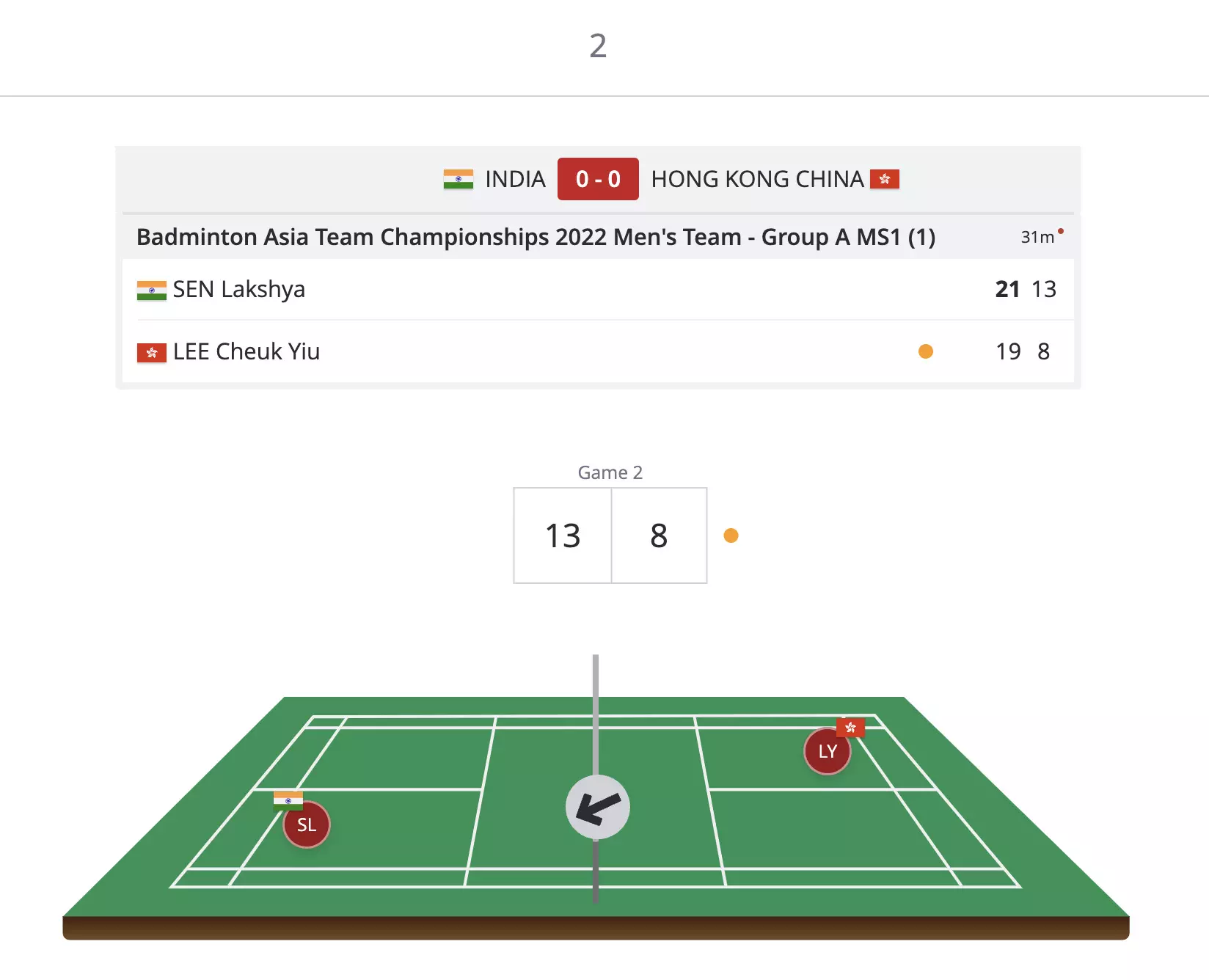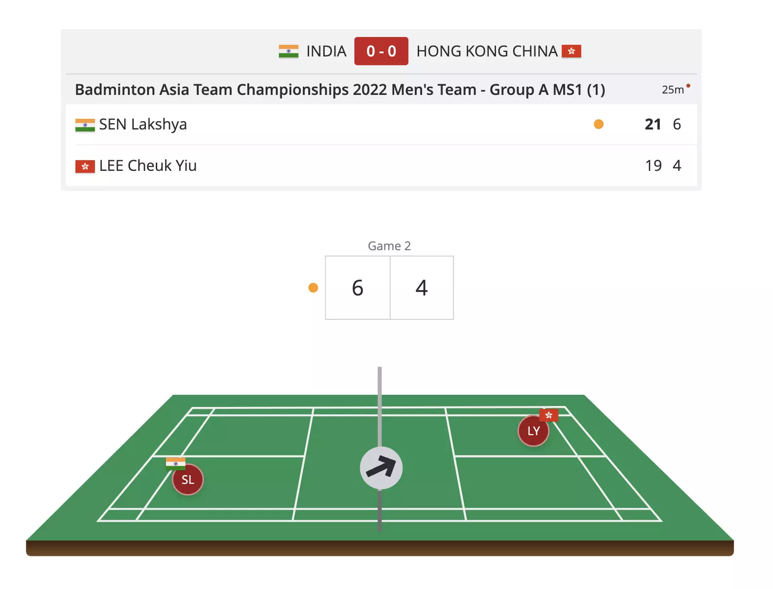 India gets off to a perfect start for the day as Lakshya Sen does everything needed to clinch the win against Lee Cheuk Yiu and he does it in straight sets and just 34 minutes, 21-19, 21-10!!