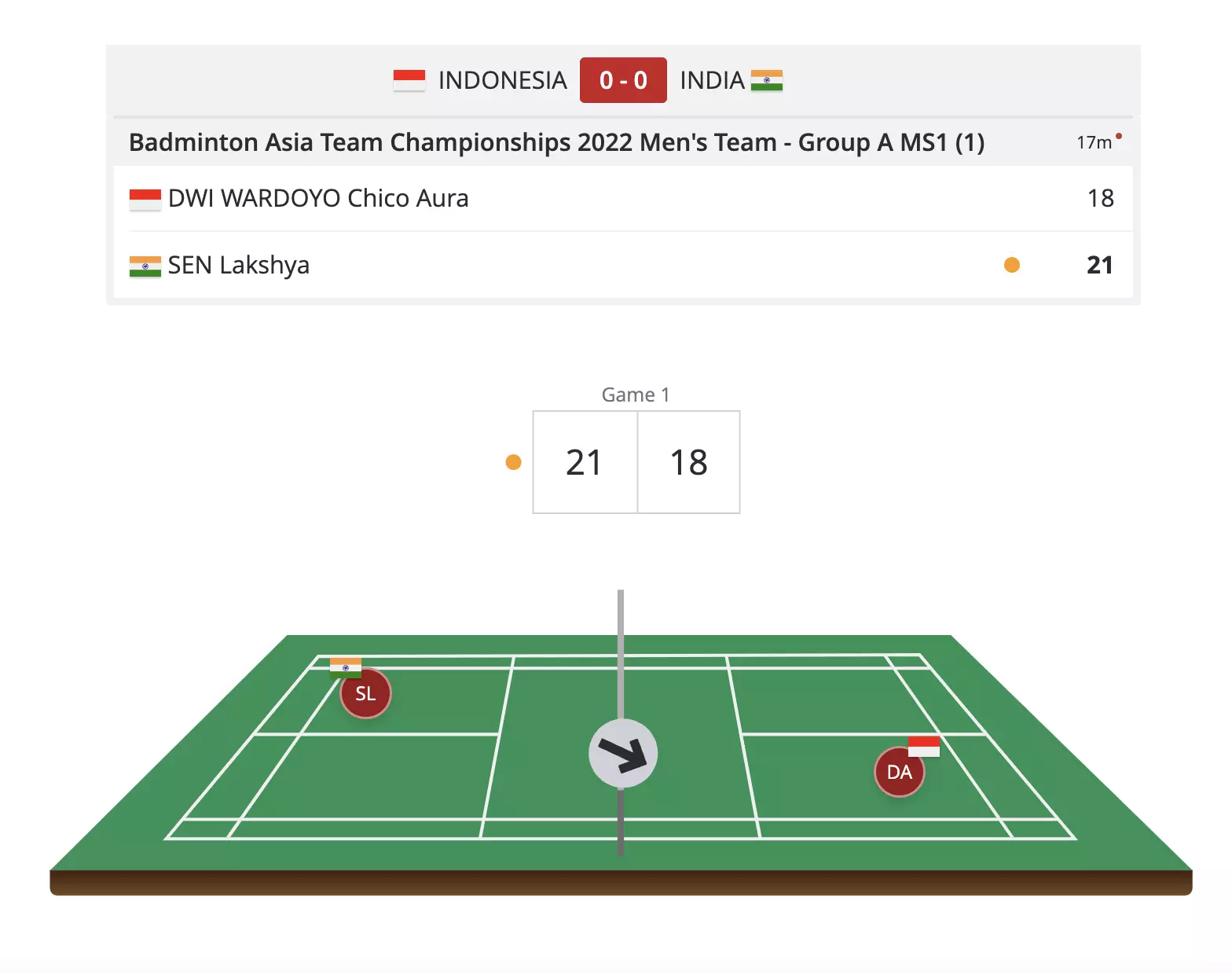 Tense battle going on in the Lakshya Sen match as the World Championship bronze medallist edged out narrowly to take the first game 21-18!