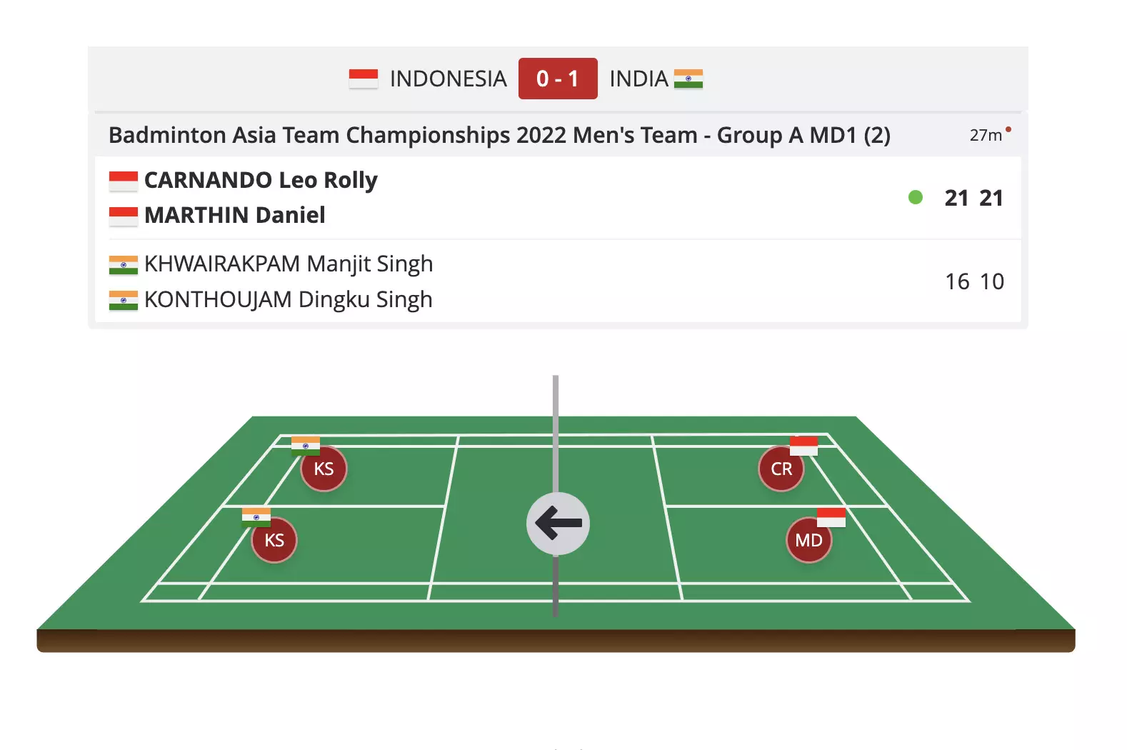 Manjit and Dingku fail to let the momentum stay with them as things go downhill superfast. India loses this match in straight games, 21-16, 21-10 and Indonesia comes on the board.