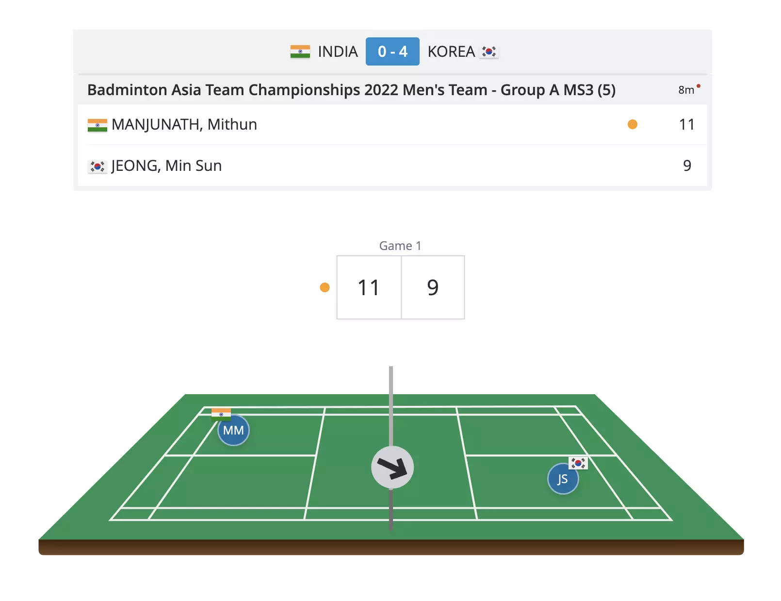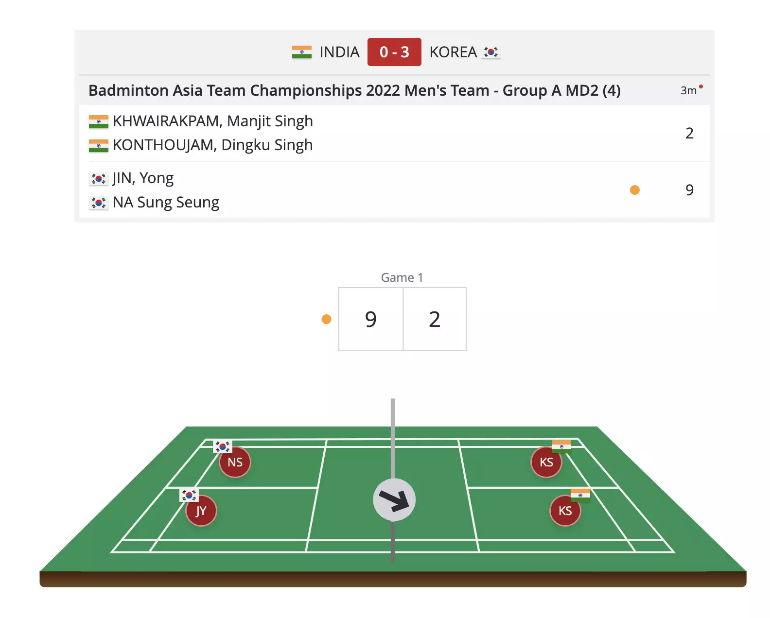 The Koreans seem to be hurrying here as they take the opening game in just 9 minutes with a score of 21-7.